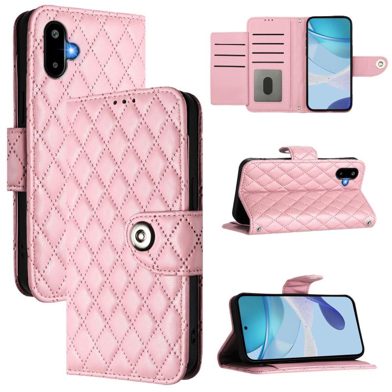 For Samsung Galaxy M06 5G / F06 5G Rhombic Texture Flip Leather Phone Case with Lanyard(Pink)