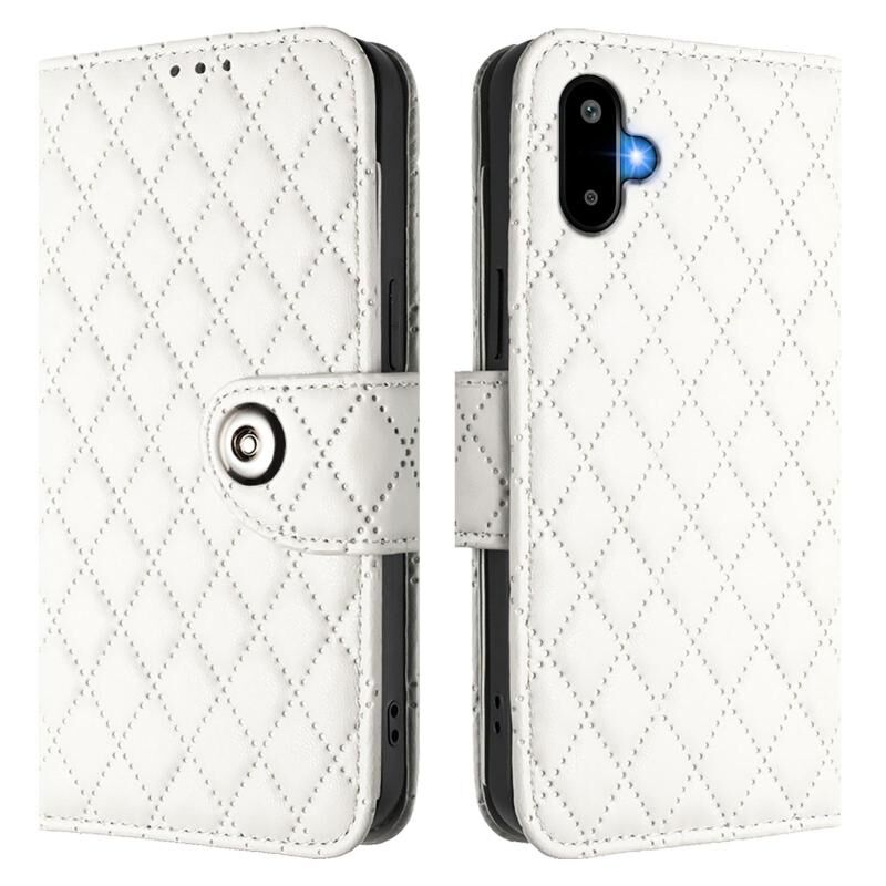 Θήκη τηλεφώνου Samsung Galaxy M06 5G / F06 5G με δερμάτινη υφή ρόμβου και λουρί (Λευκό)