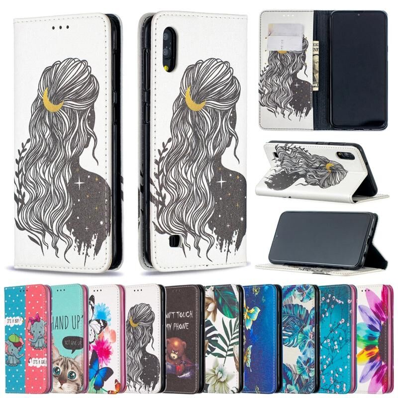 Θήκη Samsung Galaxy M10 / A10 με πολύχρωμα σχέδια, αόρατο μαγνητικό οριζόντιο flip από δερματίνη PU με βάση στήριξης & θήκες για κάρτες & πορτοφόλι (Κόκκινο)