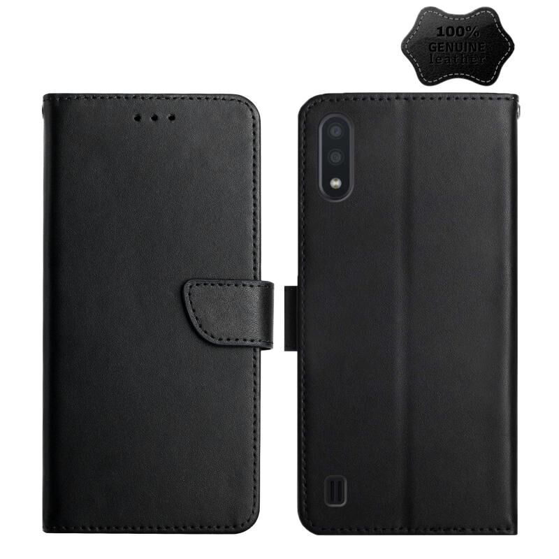 Θήκη τηλεφώνου οριζόντιας αναδίπλωσης από γνήσιο δέρμα για Samsung Galaxy M10 / A10, ανθεκτική στα δακτυλικά αποτυπώματα (Μαύρο)