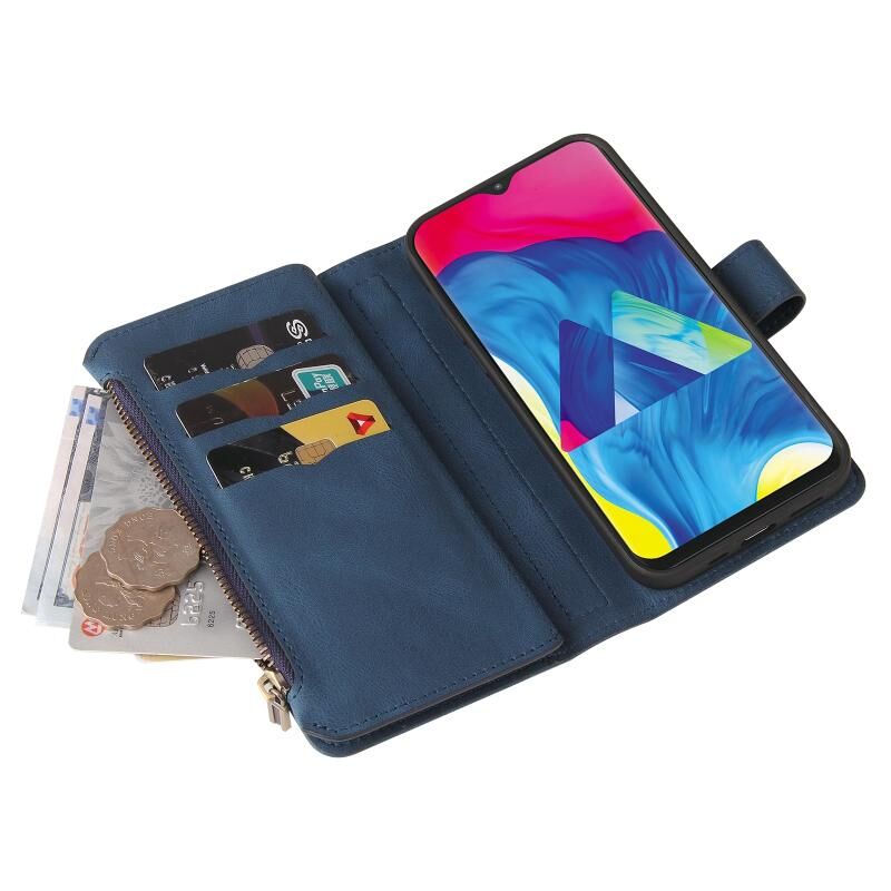 Για το Samsung Galaxy M10 / A10 Skin Feel PU + TPU Οριζόντια Flip δερμάτινη θήκη με υποδοχή & 15 κάρτες Slot & πορτοφόλι & φερμουάρ τσέπη & Lanyard (Μπλε)