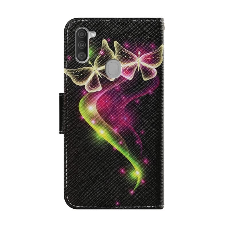 Θήκη Samsung Galaxy M11 / A11 με σχέδιο πολύχρωμης ζωγραφικής, οριζόντια, από δερματίνη PU με βάση στήριξης & θήκες για κάρτες & πορτοφόλι & κορδόνι (Ζευγάρι Πεταλούδες)