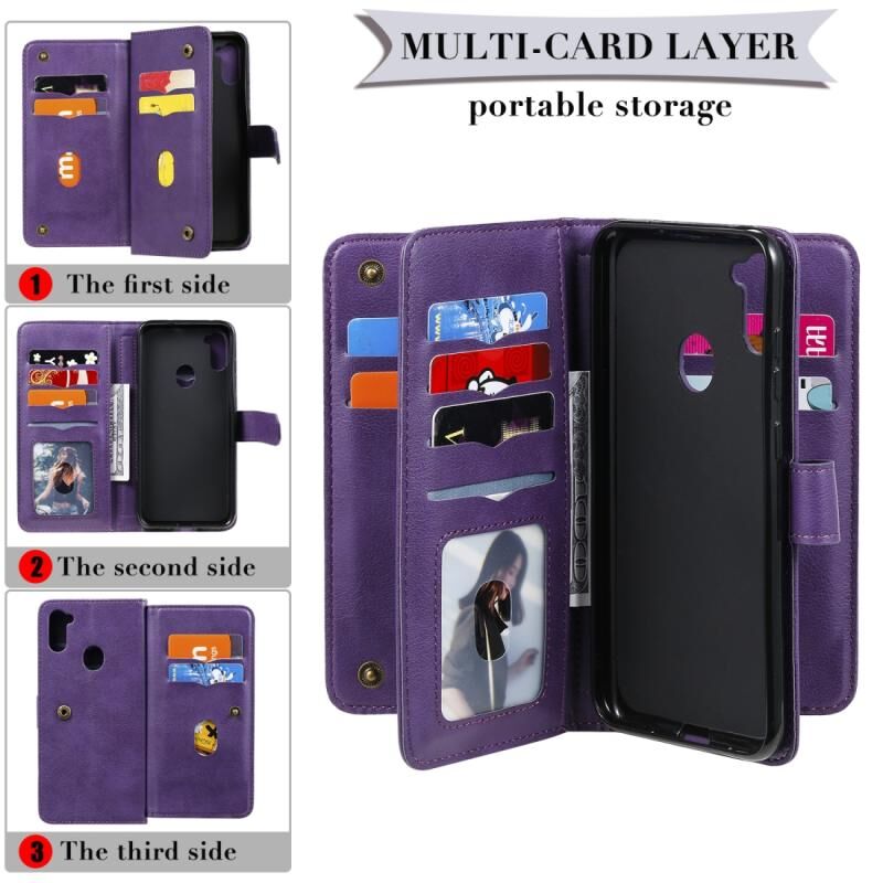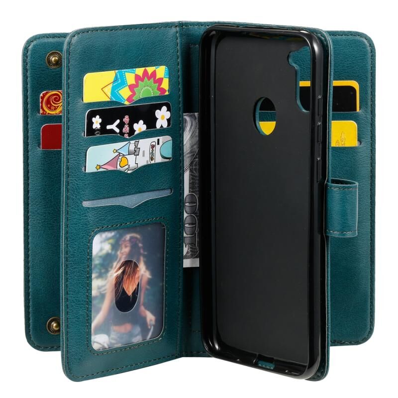 Για Samsung Galaxy M11 Πολυλειτουργική μαγνητική χάλκινη πόρπη οριζόντια Flip αμιγές χρώμα δερμάτινη θήκη με 10 υποδοχές για κάρτες & πορτοφόλι & κάτοχος & κορνίζα φωτογραφιών (σκούρο πράσινο)