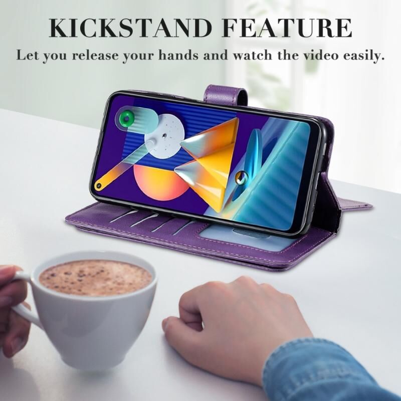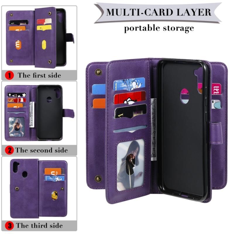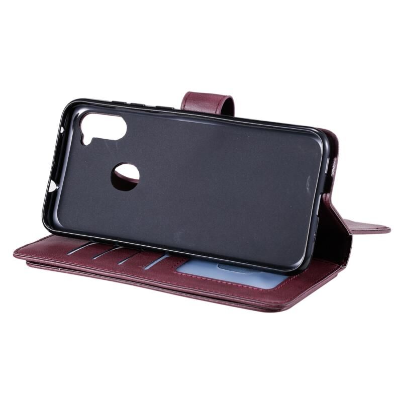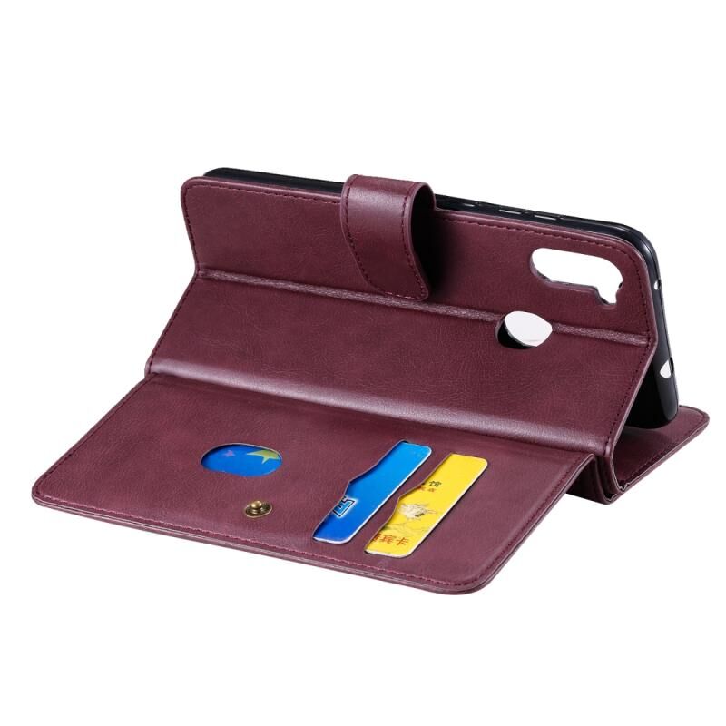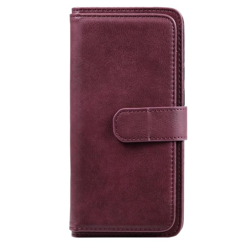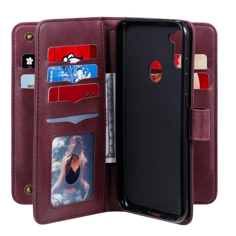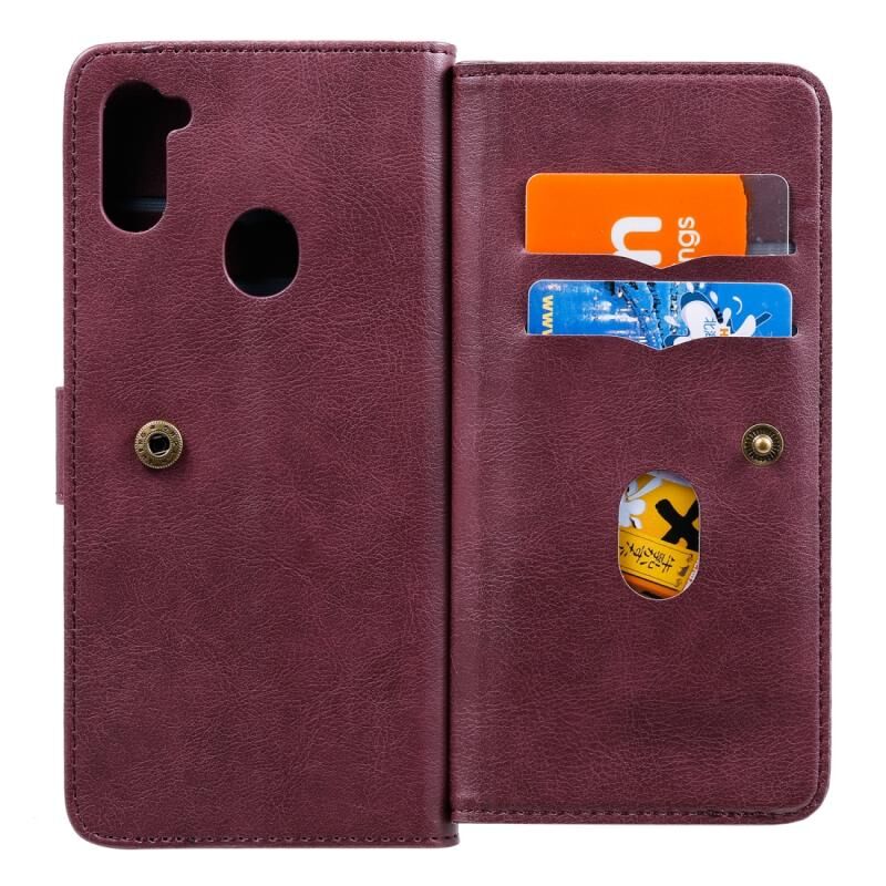 Θήκη Samsung Galaxy M11 Πολυλειτουργική Μαγνητική Θήκη με Αγκράφα από Χαλκό, Οριζόντια, Μονόχρωμη Δερμάτινη με 10 Θήκες για Κάρτες & Πορτοφόλι & Στήριξη & Κορνίζα Φωτογραφιών (Κρασοκόκκινο)