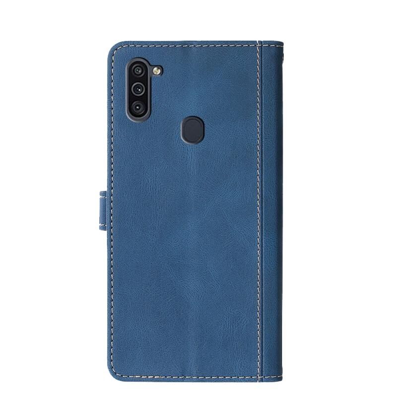 Για Samsung Galaxy M11 Stitching δέρμα αίσθηση μαγνητική πόρπη οριζόντια Flip PU δέρμα υπόθεση με κάτοχο & υποδοχές για κάρτες & πορτοφόλι (μπλε)