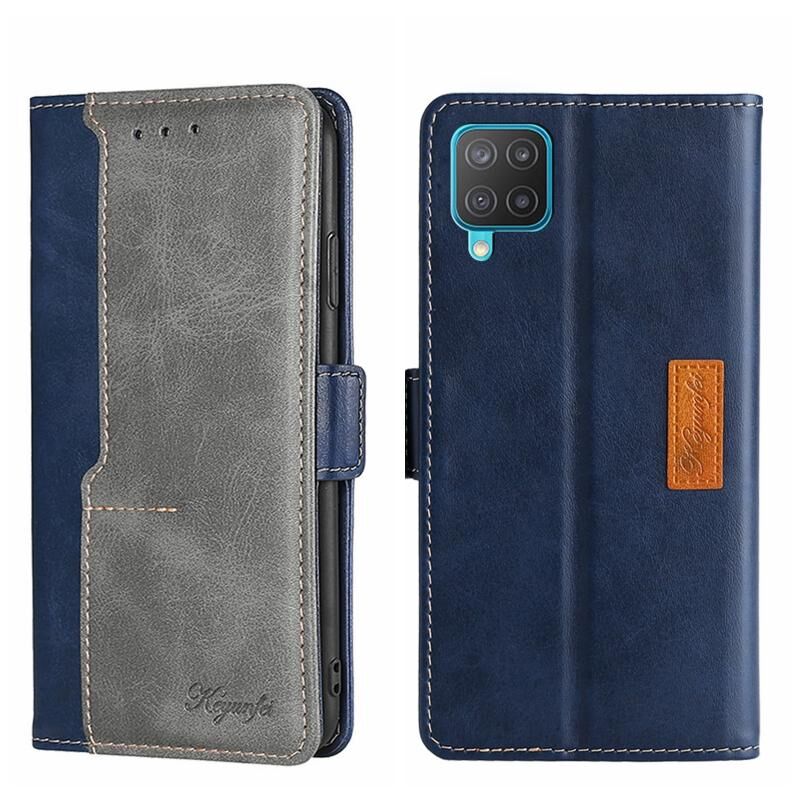 Για Samsung Galaxy M12/F12 Αντίθετο χρώμα πλευρά πόρπη δερμάτινη θήκη τηλεφώνου (Μπλε και γκρι)