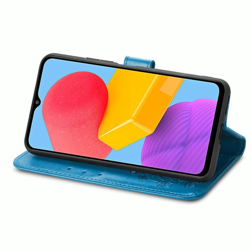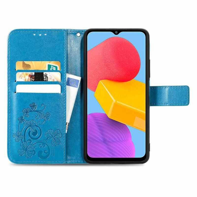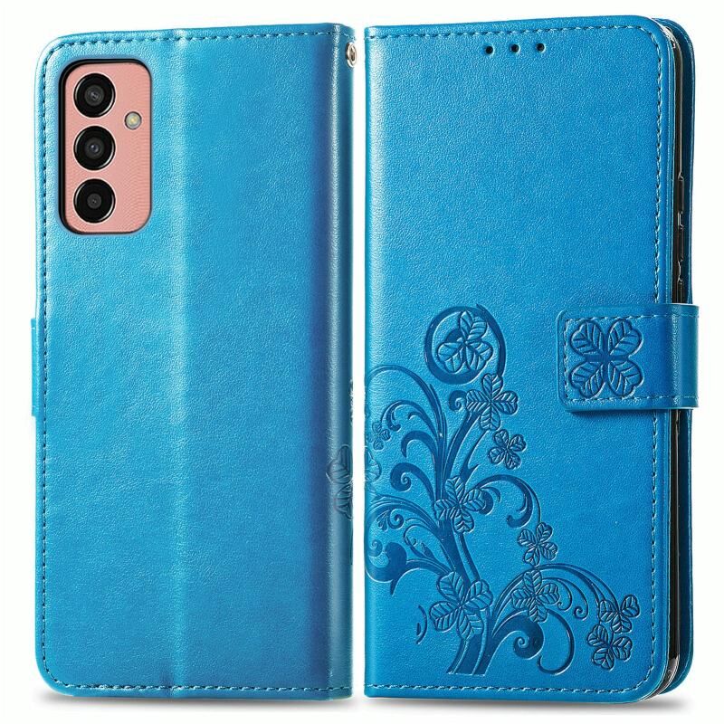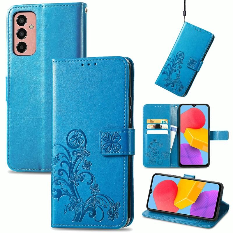 Για Samsung Galaxy M13 4G τετράφυλλο κούμπωμα ανάγλυφο πόρπη δερμάτινη θήκη τηλεφώνου (μπλε)