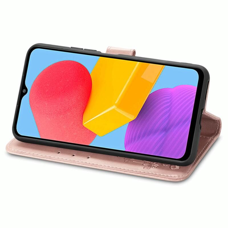 Για Samsung Galaxy M13 4G Four-leaf κούμπωμα ανάγλυφο αγκράφα δερμάτινη θήκη τηλεφώνου (ροζ χρυσό)
