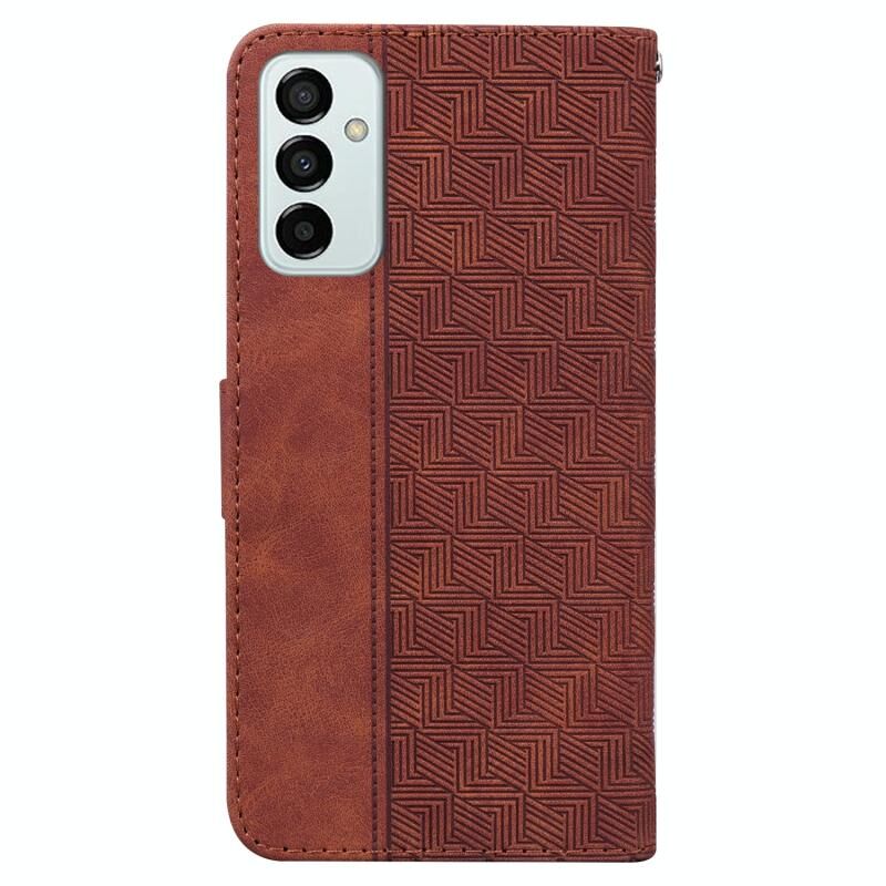 Για Samsung Galaxy M13 4G γεωμετρική ανάγλυφη θήκη τηλεφώνου με δερμάτινη επένδυση (καφέ)