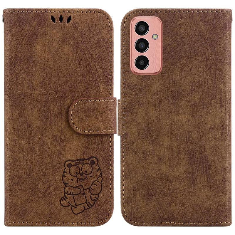 Θήκη τηλεφώνου Samsung Galaxy M13 4G Little Tiger, δερμάτινη με ανάγλυφο σχέδιο (Καφέ)
