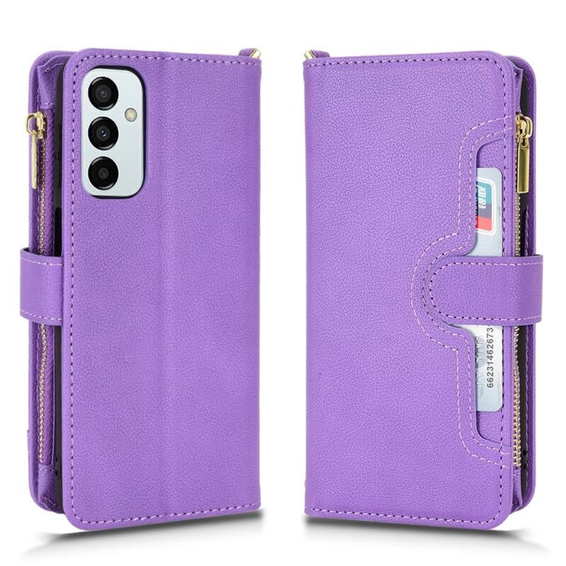 Για Samsung Galaxy M13 4G / M23 / F23 5G Litchi υφή φερμουάρ δερμάτινη θήκη τηλεφώνου (Μωβ)