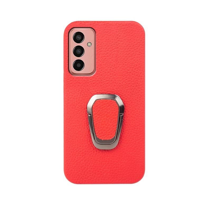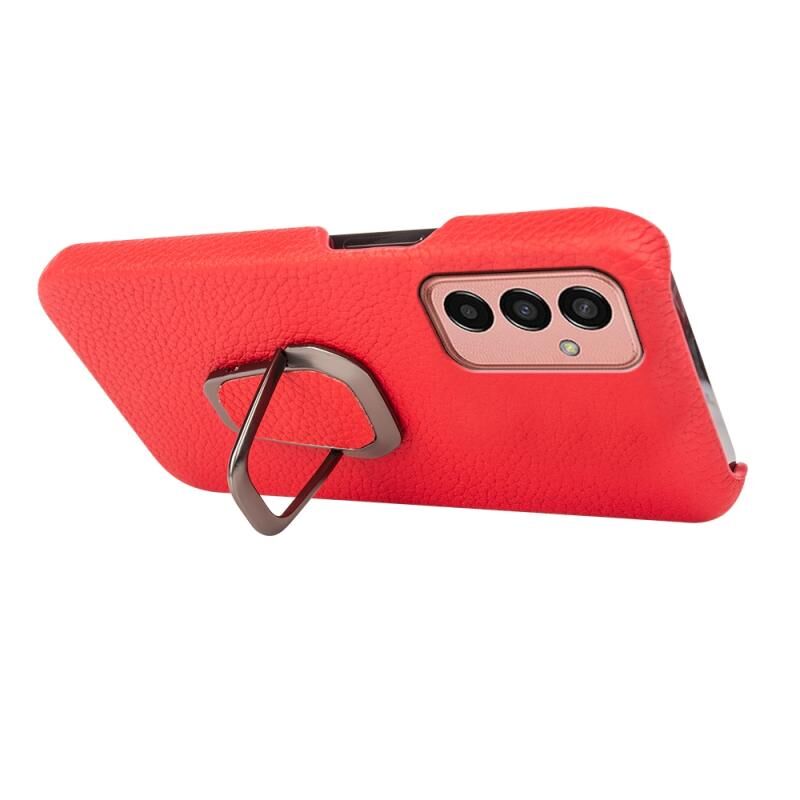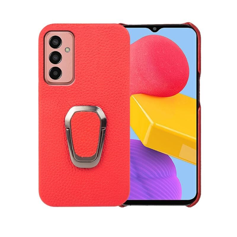 Θήκη κινητού τηλεφώνου Samsung Galaxy M13 4G με δακτύλιο και γνήσιο δέρμα με υφή λύτσι (Κόκκινο)