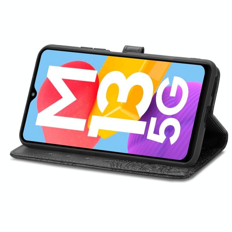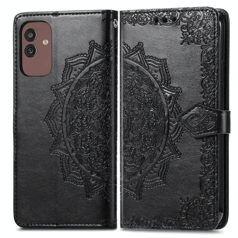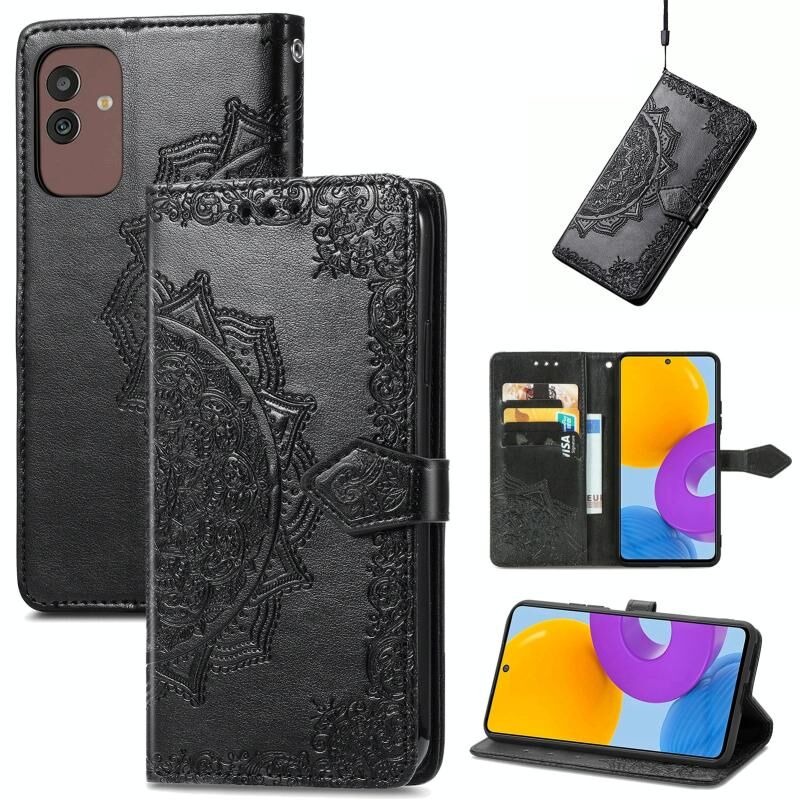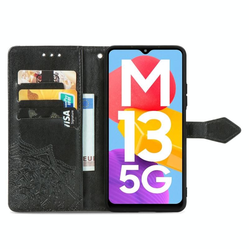 Για Samsung Galaxy M13 5G Mandala λουλούδι ανάγλυφο δερμάτινη θήκη τηλεφώνου (μαύρο)