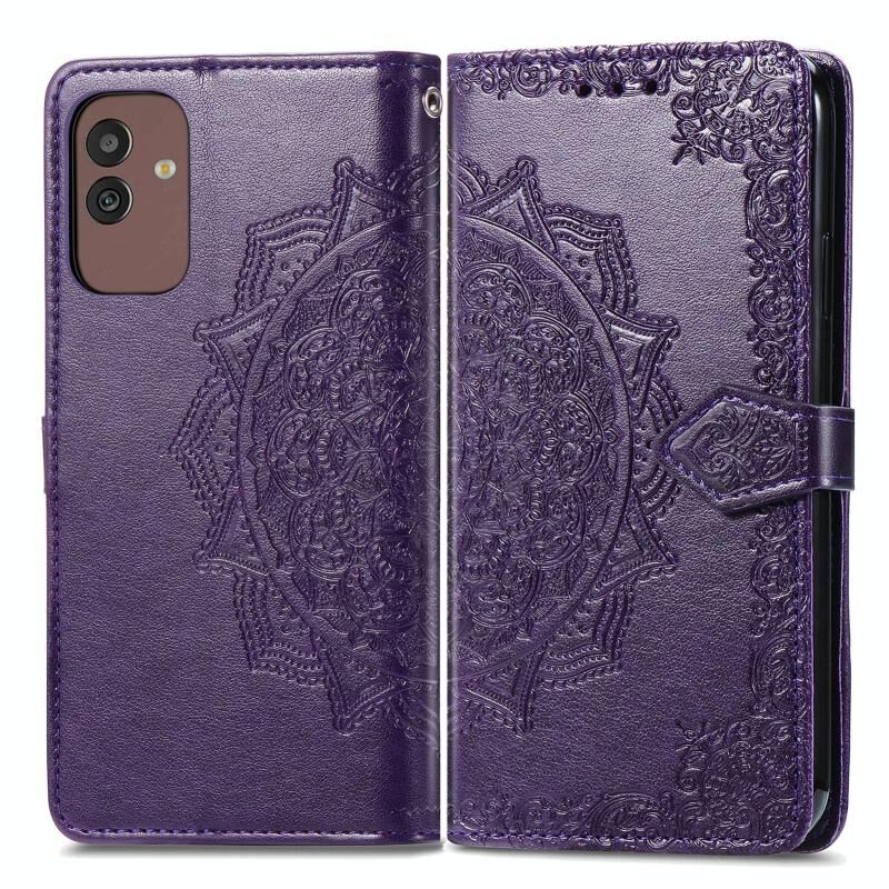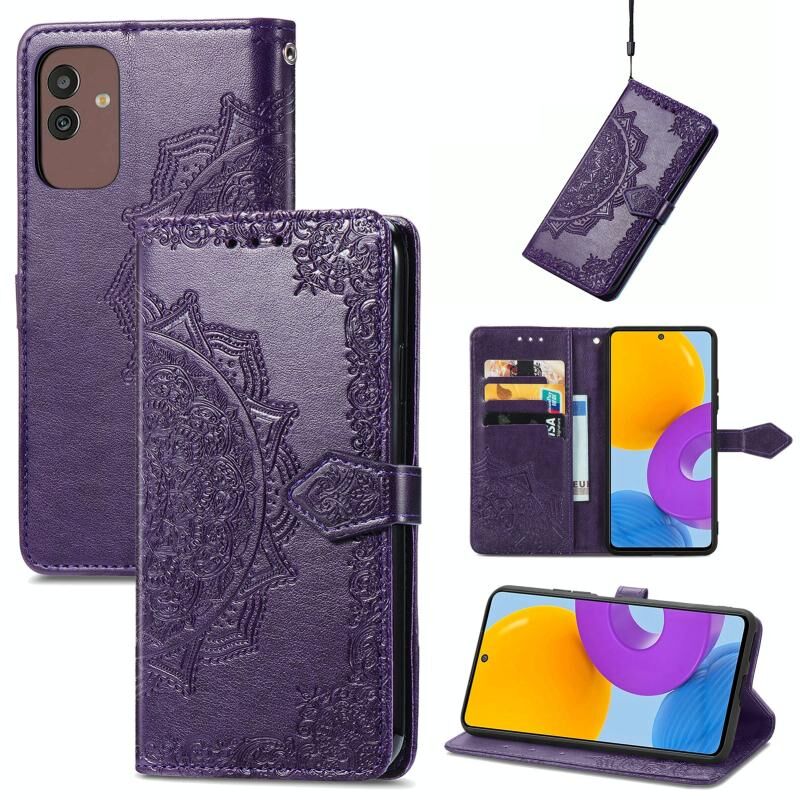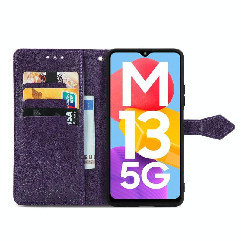 Για Samsung Galaxy M13 5G Mandala λουλούδι ανάγλυφο δερμάτινη θήκη τηλεφώνου (μωβ)