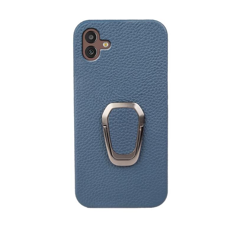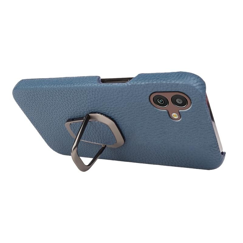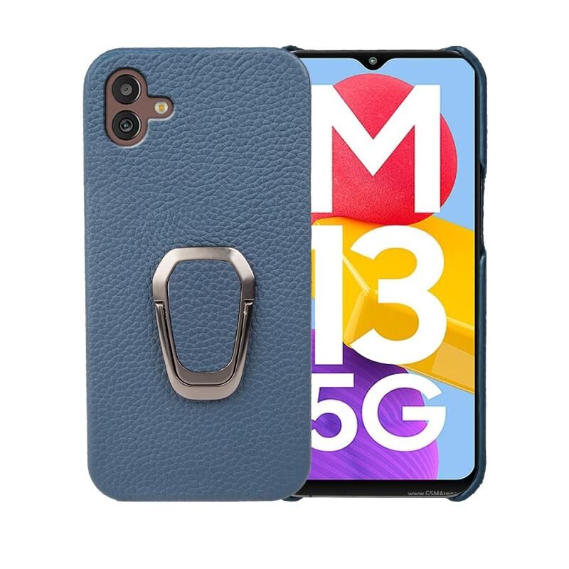 Θήκη κινητού τηλεφώνου Samsung Galaxy M13 5G με δακτύλιο στήριξης, γνήσιο δέρμα με υφή λύτσι (Μπλε)