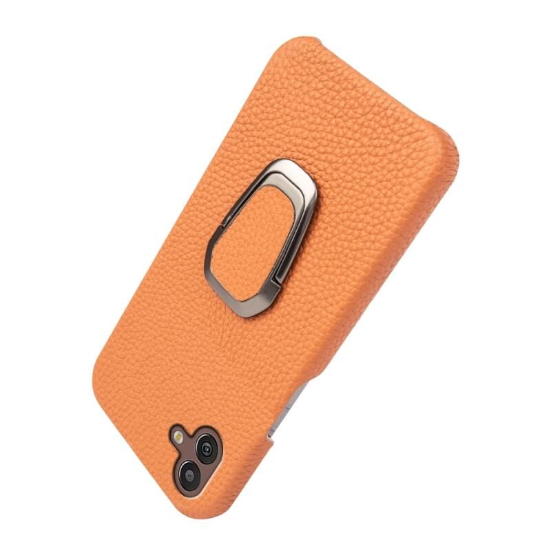 Θήκη κινητού τηλεφώνου Samsung Galaxy M13 5G με δακτύλιο στήριξης, γνήσιο δέρμα με υφή λύτσι (Καφέ)