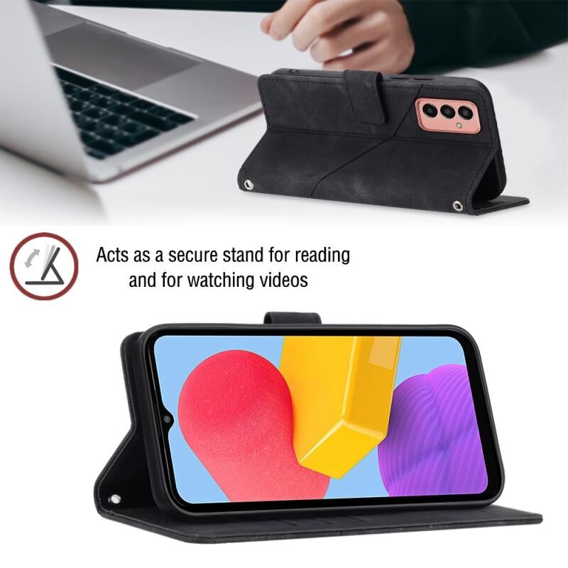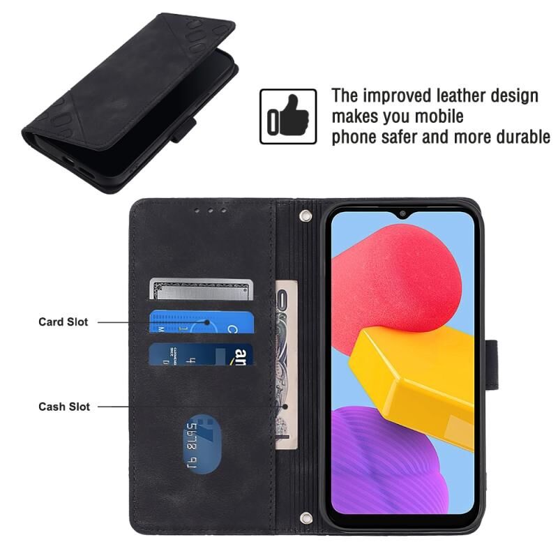 Για Samsung Galaxy M13 Global Skin-feel ανάγλυφη δερμάτινη θήκη τηλεφώνου (μαύρο)