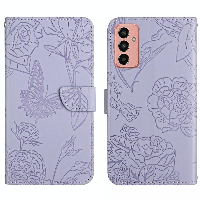 Για το Samsung Galaxy M13 HT03 δέρμα αίσθηση πεταλούδα ανάγλυφο Flip δέρμα τηλέφωνο υπόθεση (Μωβ)