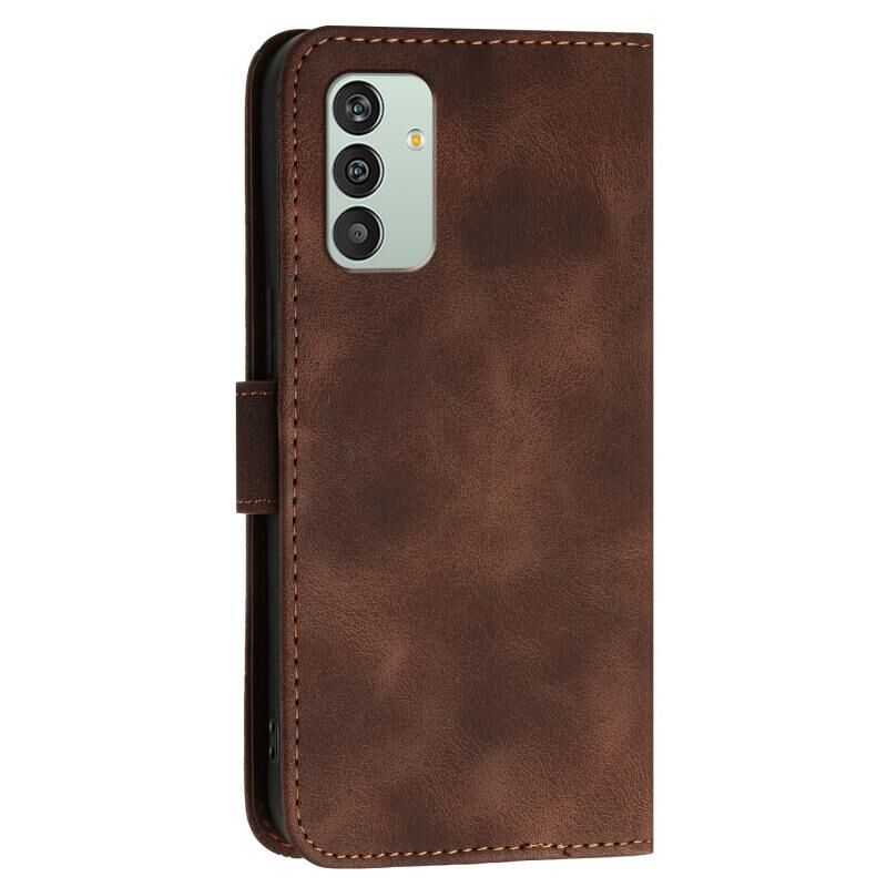 Θήκη τηλεφώνου Samsung Galaxy M13 India YX0080 με σχέδιο πλέγματος και ανάγλυφο πεταλούδας, δερμάτινη, με λουρί (Καφέ)