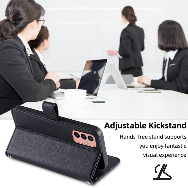 Θήκη κινητού Samsung Galaxy M13, δερμάτινη με φερμουάρ και σχέδιο προβάτου, για crossbody (Μαύρο)