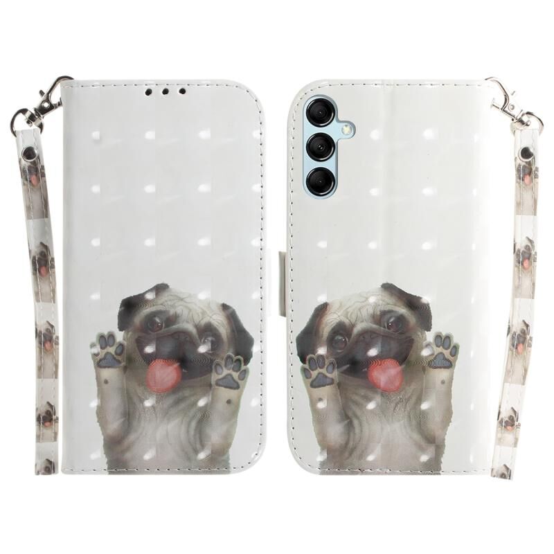 Θήκη τηλεφώνου Samsung Galaxy M14 3D πολύχρωμη οριζόντια δερμάτινη (Pug)