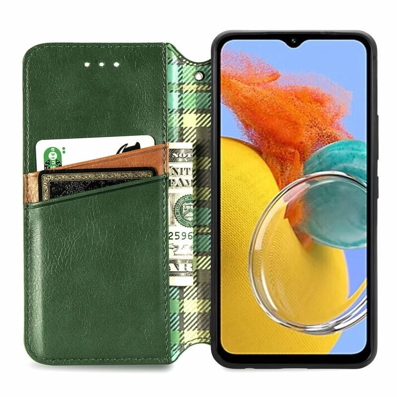 Για Samsung Galaxy M14 4G κυβικό πλέγμα πρεσαριστή μαγνητική δερμάτινη θήκη τηλεφώνου (πράσινο)