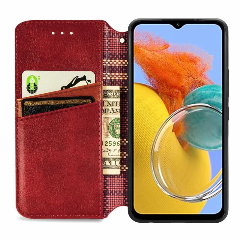Για Samsung Galaxy M14 4G κυβικό πλέγμα πρεσαριστή μαγνητική δερμάτινη θήκη τηλεφώνου (Κόκκινο)