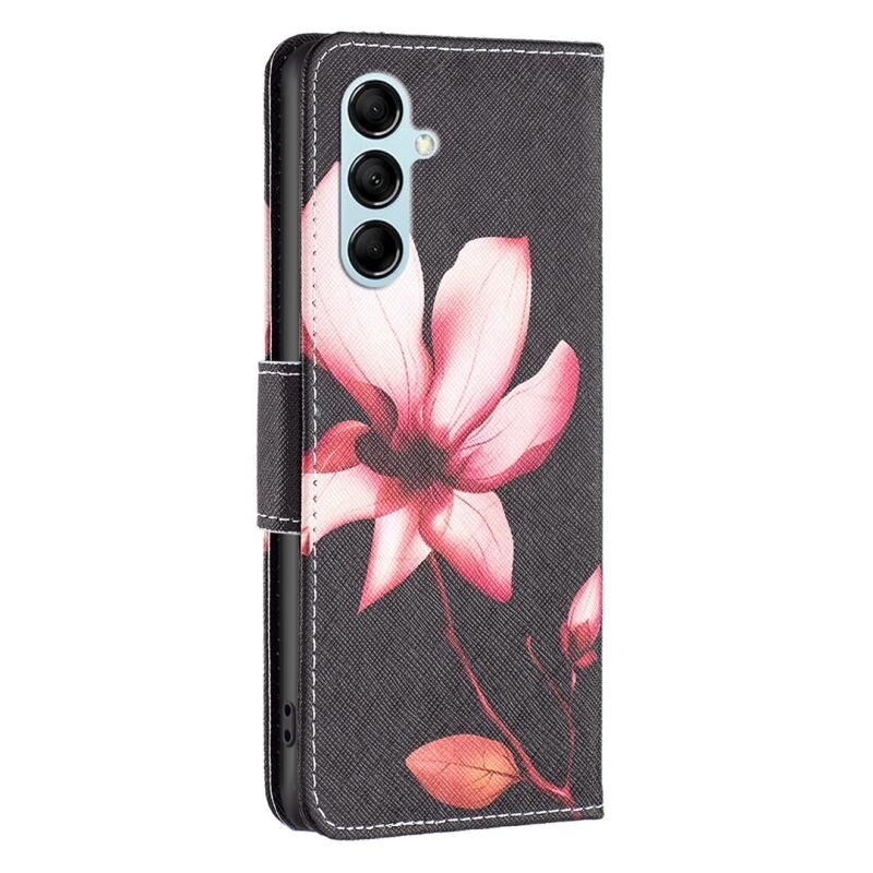 Θήκη τηλεφώνου Samsung Galaxy M14 5G με σχέδιο λωτού από δέρμα σε διάφορα χρώματα. (Κόκκινο)
