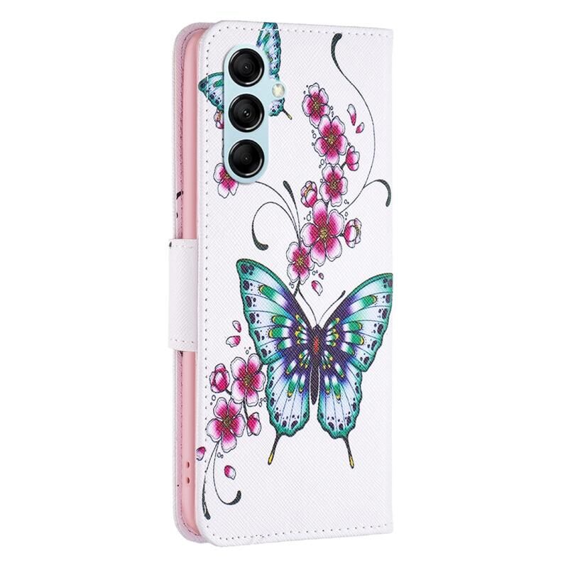 Θήκη τηλεφώνου από δέρμα με έγχρωμο σχέδιο για Samsung Galaxy M14 5G (Πεταλούδα με άνθη ροδακινιάς)