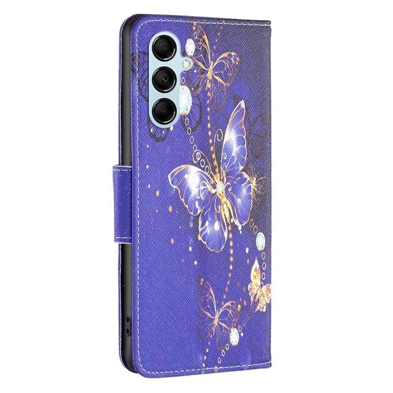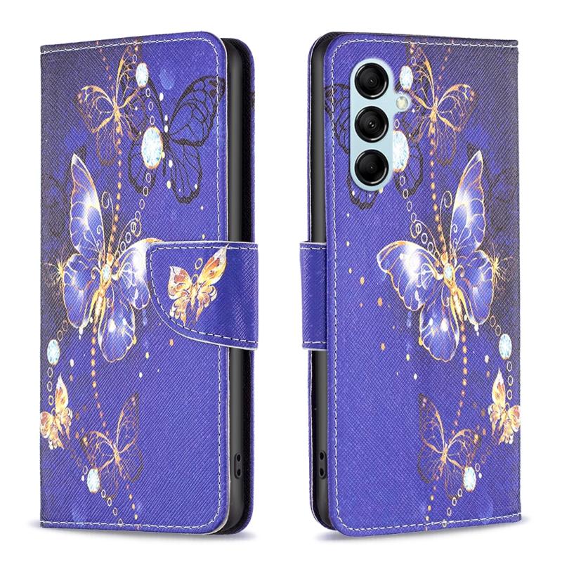 For Samsung Galaxy M14 5G Colored Drawing Leather Phone Case(Purple Butterfly)