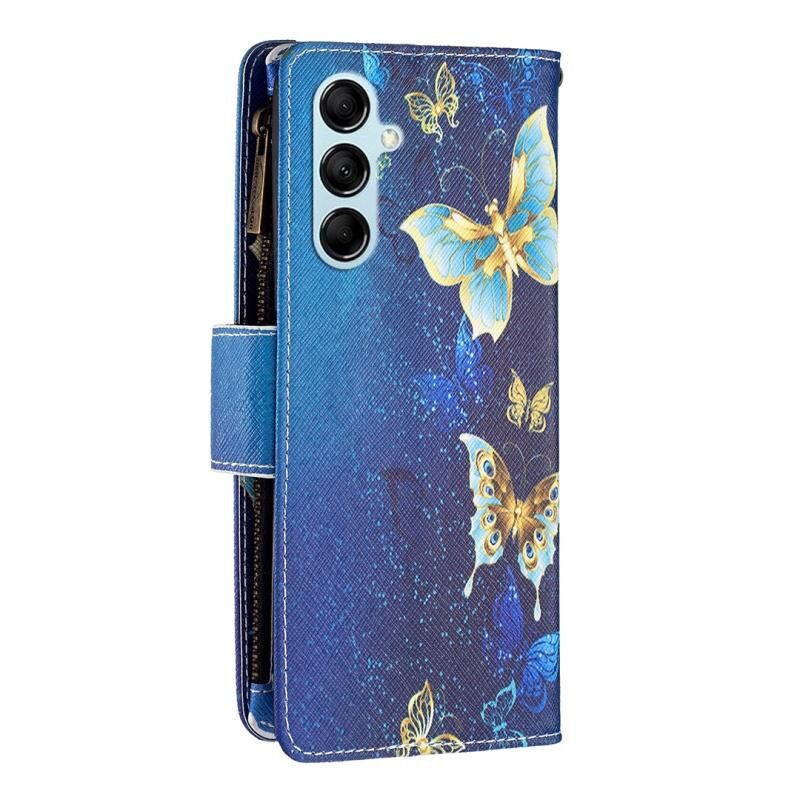 Θήκη κινητού Samsung Galaxy M14 5G από δέρμα με φερμουάρ και σχέδιο ζωγραφικής σε χρώμα (Χρυσή Πεταλούδα)