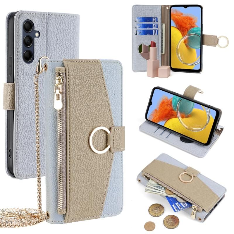Για Samsung Galaxy M14 5G Crossbody Litchi Υφή δερμάτινη θήκη τηλεφώνου (Μπλε)