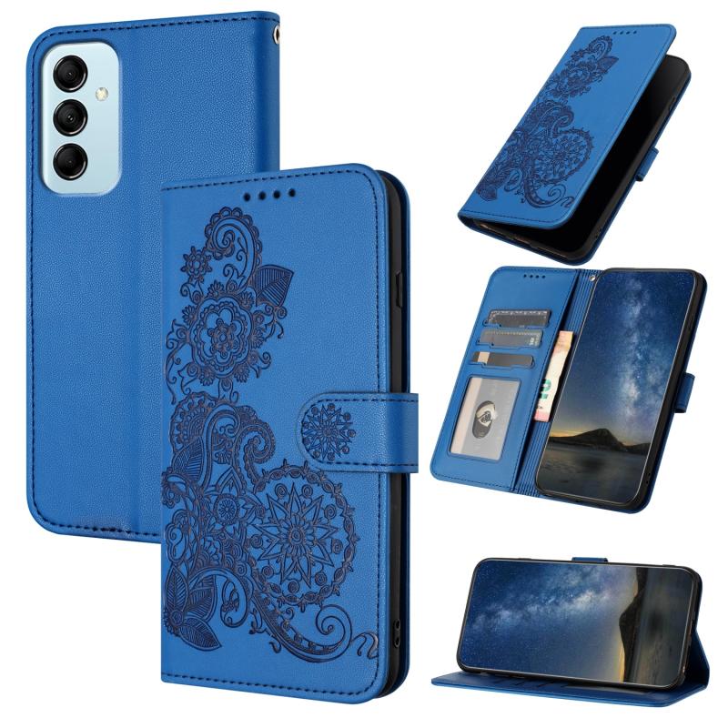 For Samsung Galaxy M14 5G / F14 5G Datura Flower Embossed Flip Leather Phone Case(Blue)