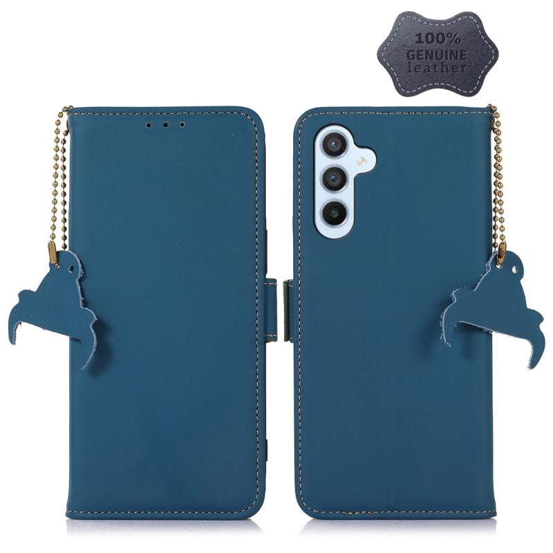 For Samsung Galaxy M14 5G Genuine Leather Magnetic RFID Leather Phone Case(Blue)