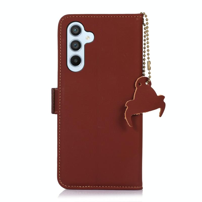 Θήκη τηλεφώνου από γνήσιο δέρμα με μαγνητικό κλείσιμο RFID για Samsung Galaxy M14 5G (Καφέ)