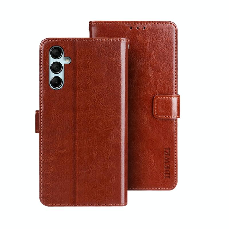 Θήκη κινητού τηλεφώνου idewei από δέρμα Crazy Horse με υφή για Samsung Galaxy M14 5G με βάση στήριξης (Καφέ) (idewei)