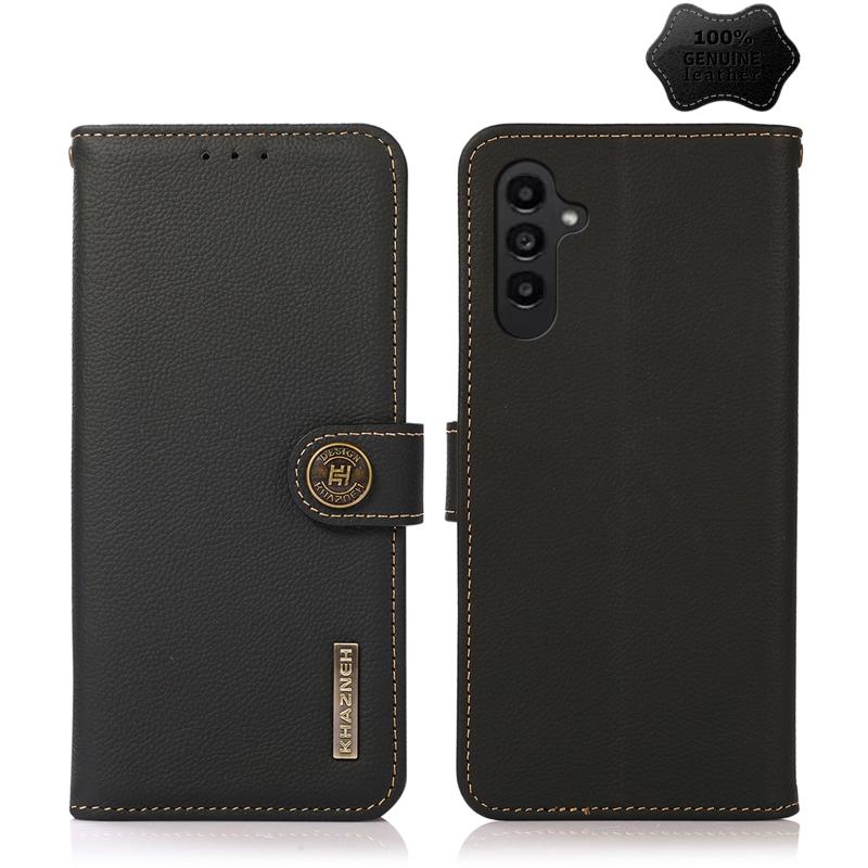 For Samsung Galaxy M14 5G KHAZNEH Custer Genuine Leather RFID Phone Case(Black)