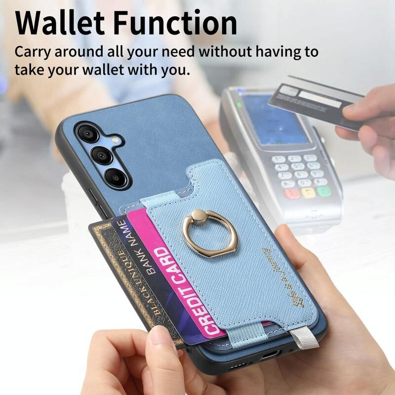 Θήκη κινητού τηλεφώνου Samsung Galaxy M14 5G Retro Cross Leather Ring Horizontal Insert Card Bag MagSafe (Μπλε)