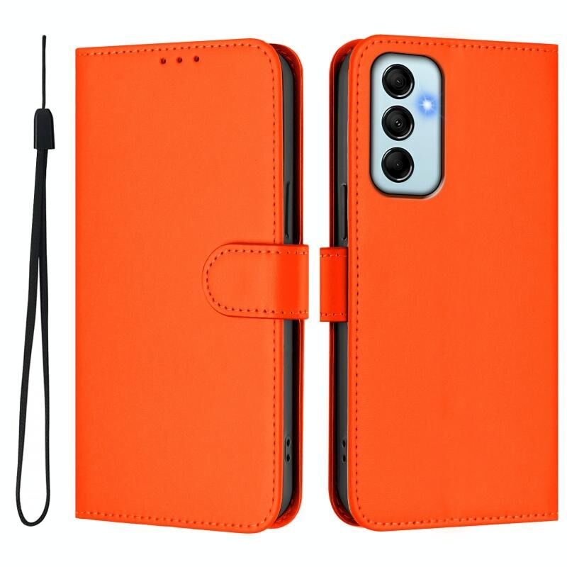 Για Samsung Galaxy M14 5G δέρμα αίσθηση στερεό χρώμα δερμάτινη θήκη τηλεφώνου με κορδόνι (Πορτοκαλί)