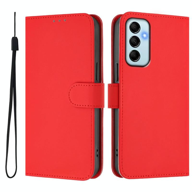 Για Samsung Galaxy M14 5G δέρμα αίσθηση στερεό χρώμα δερμάτινη θήκη τηλεφώνου με κορδόνι (Κόκκινο)
