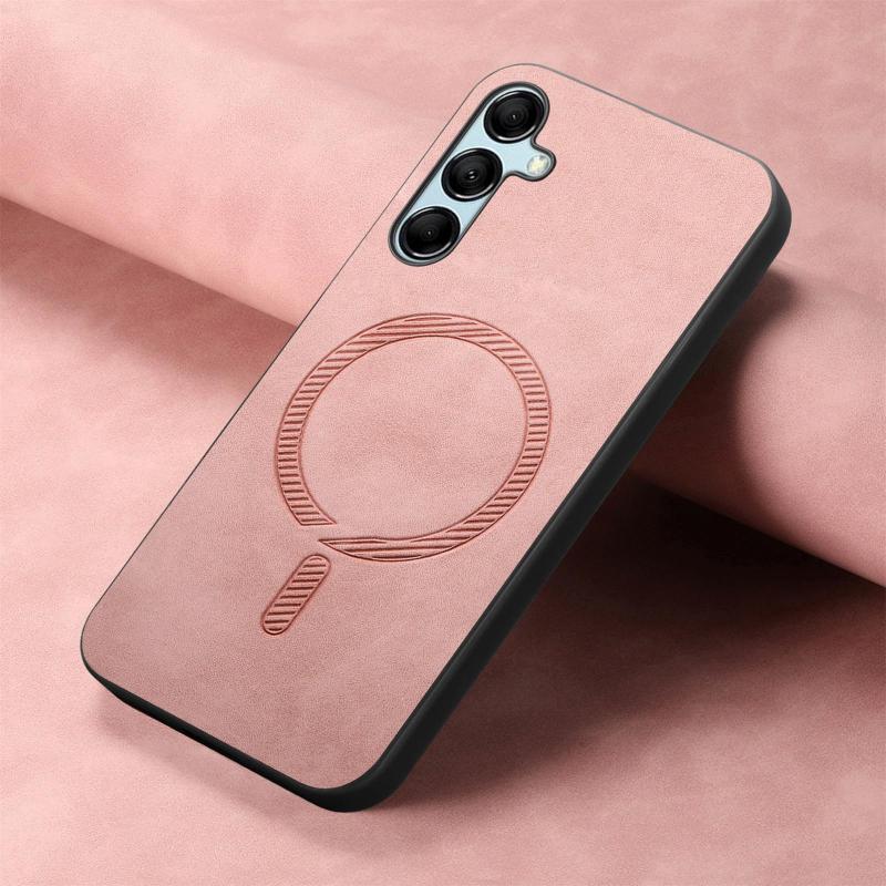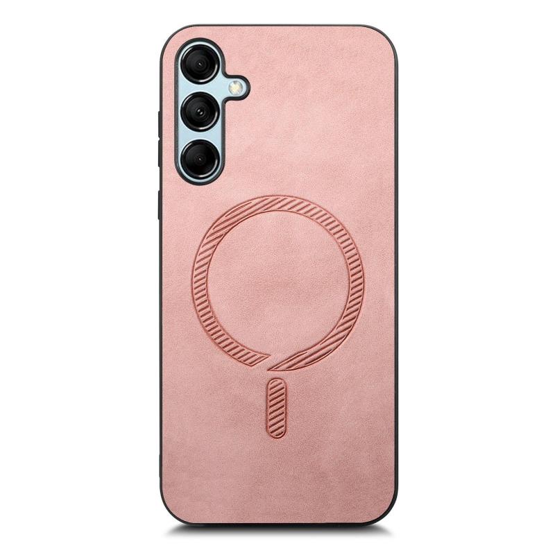 For Samsung Galaxy M14 5G Solid Color Retro Magsafe PU Back Cover Phone Case(Pink)