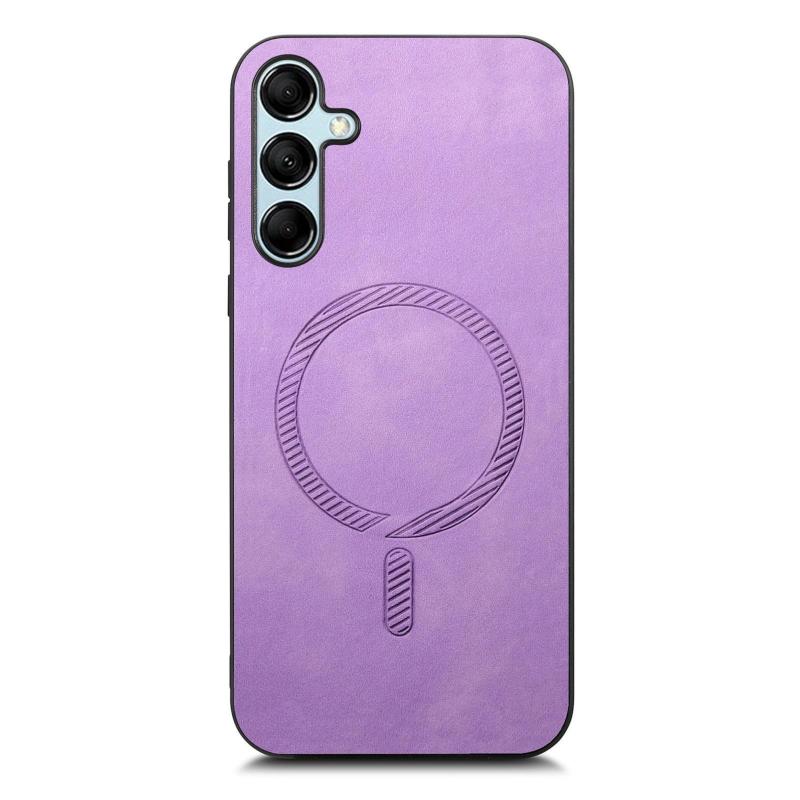 For Samsung Galaxy M14 5G Solid Color Retro Magsafe PU Back Cover Phone Case(Purple)