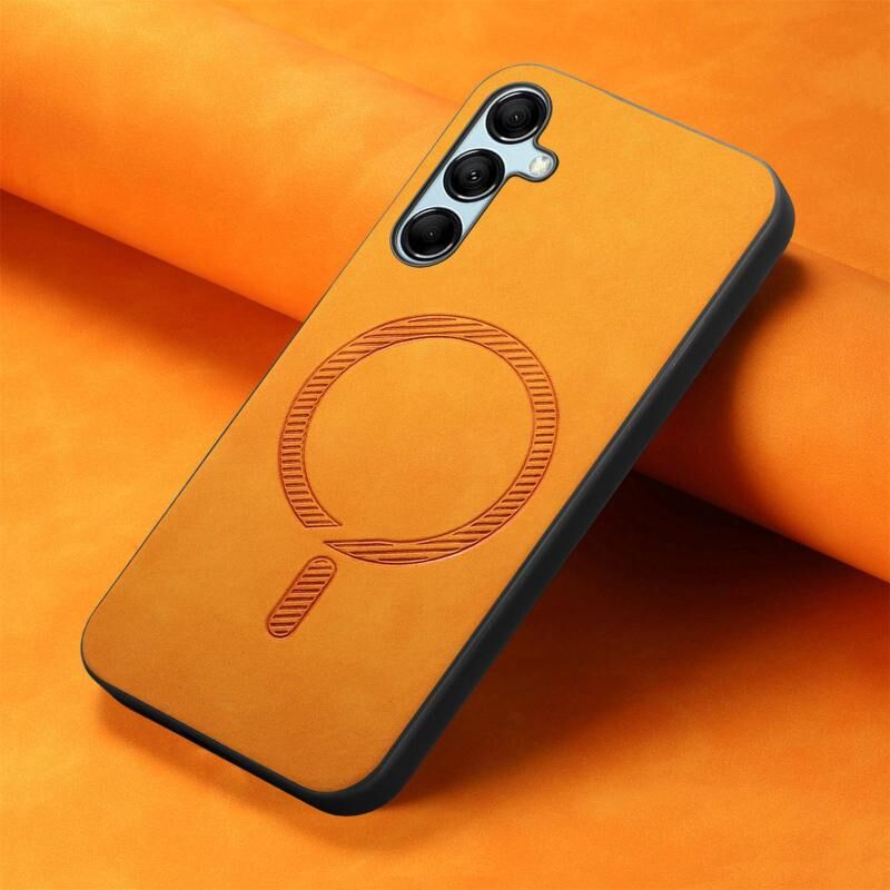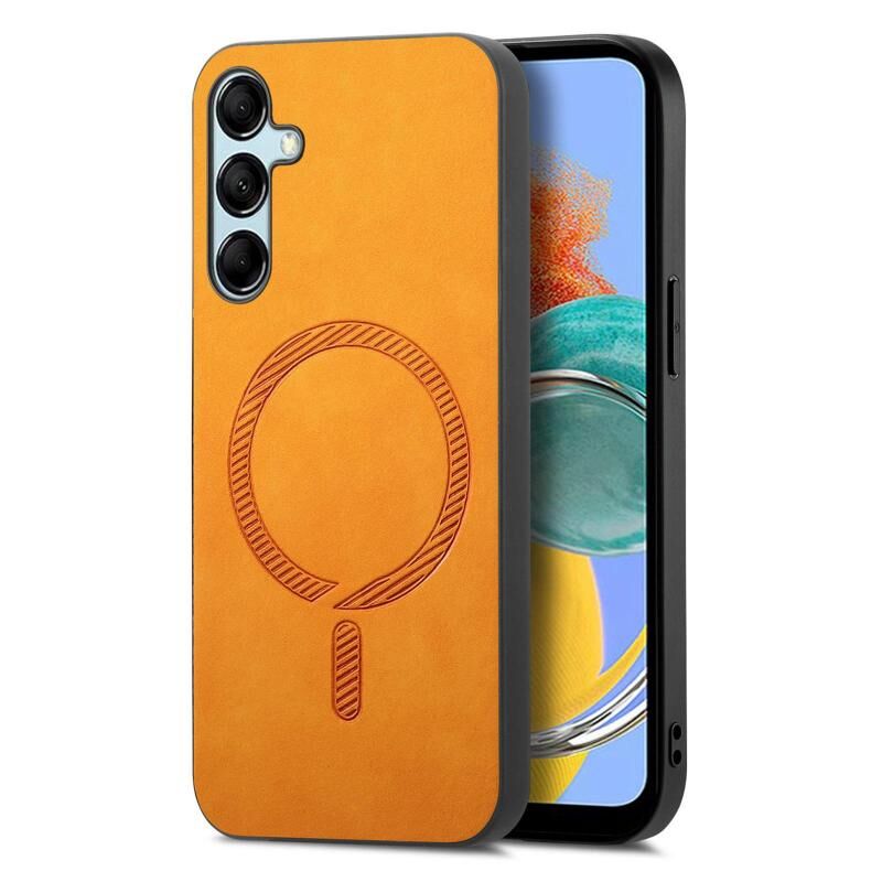 Θήκη κινητού τηλεφώνου Samsung Galaxy M14 5G, μονόχρωμη, ρετρό, με μαγνητική σύνδεση (Magsafe), από PU (ροζ)