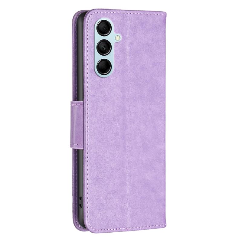 For Samsung Galaxy M14 5G Two Butterflies Embossing Leather Phone Case(Purple)