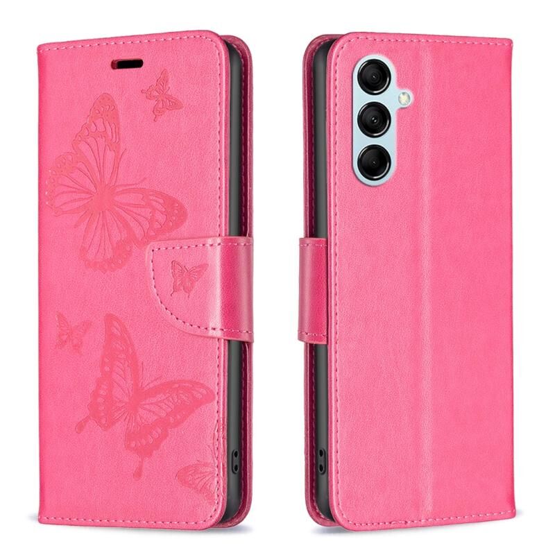 For Samsung Galaxy M14 5G Two Butterflies Embossing Leather Phone Case(Rose Red)