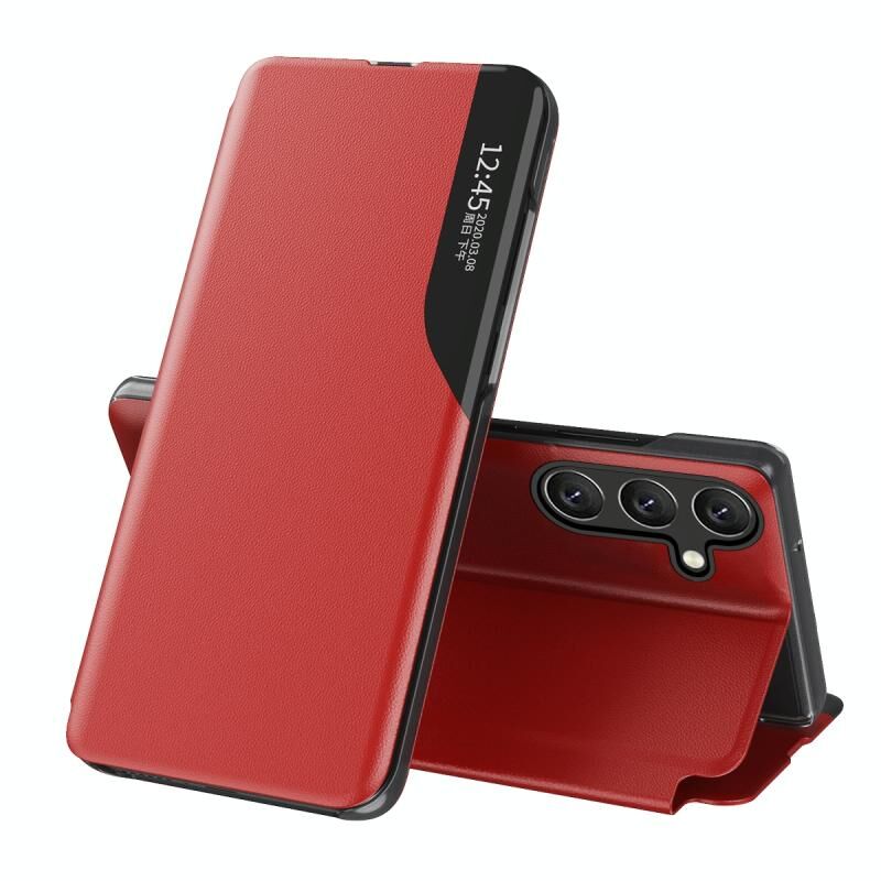 Για Samsung Galaxy M14 Attraction Flip κάτοχος δερμάτινη θήκη τηλεφώνου (κόκκινο)