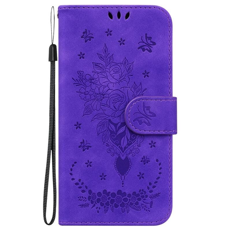 Για Samsung Galaxy M14 πεταλούδα Rose ανάγλυφο δέρμα υπόθεση τηλεφώνου (Μωβ)
