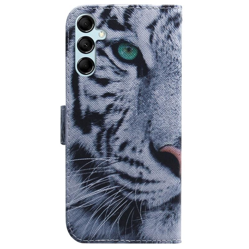 Θήκη τηλεφώνου Samsung Galaxy M14 με σχέδιο τίγρη, δερμάτινη, τύπου flip, σε διάφορα χρώματα.