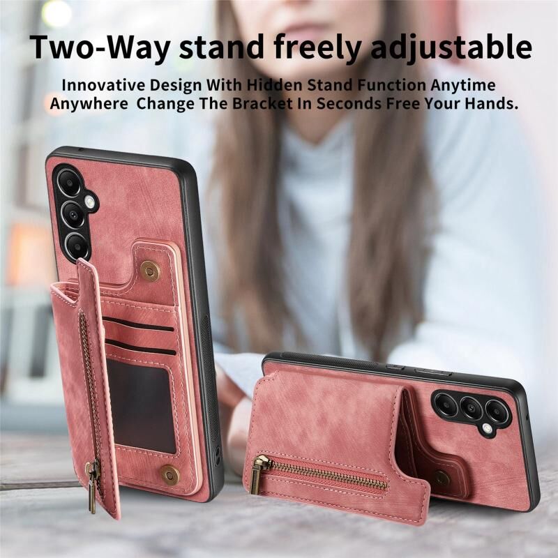 Για Samsung Galaxy M14 Ρετρό δέρμα φερμουάρ πορτοφόλι πίσω θήκη τηλεφώνου (ροζ)