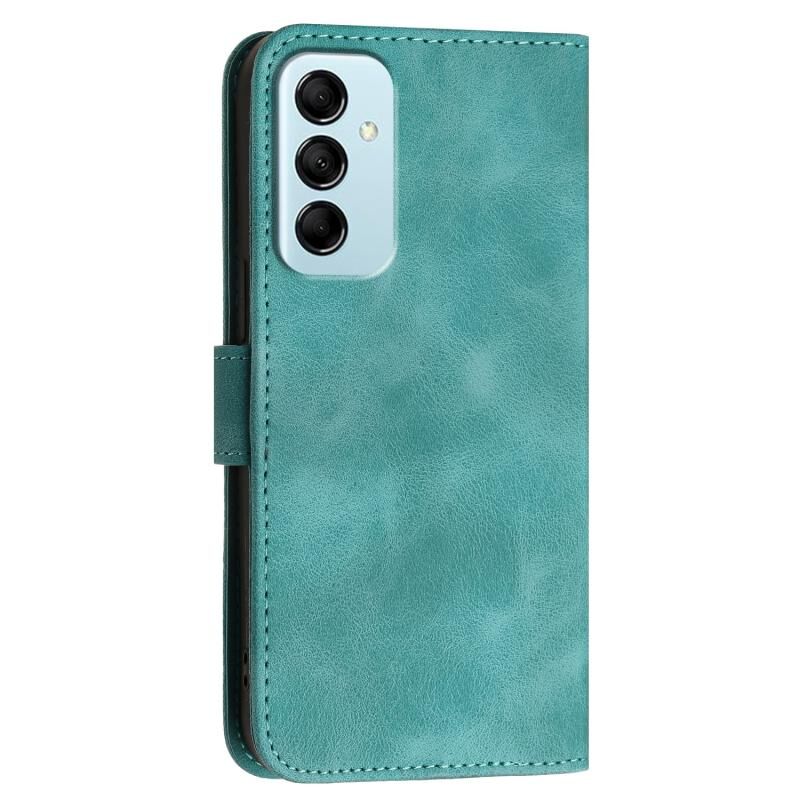 Θήκη τηλεφώνου Samsung Galaxy M14 YX0080, δερμάτινη, τύπου flip, με ανάγλυφο σχέδιο πλέγματος και πεταλούδας, με κορδόνι (ανοιχτό μπλε). (Ανοιχτό μπλε)